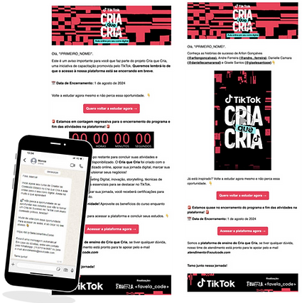 CRM para la plataforma educativa de Creadores del TikTok, con envíos automáticos de emails y mensajes de WhatsApp.+3.000.000 emails enviados+1.00.000 de mensajes enviados por WhatsApp